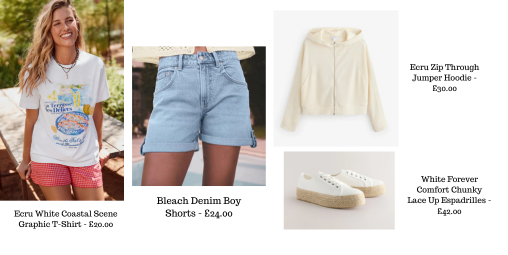 vibe, layered with a cozy ecru zip-through hoodie for when the sun sets, and