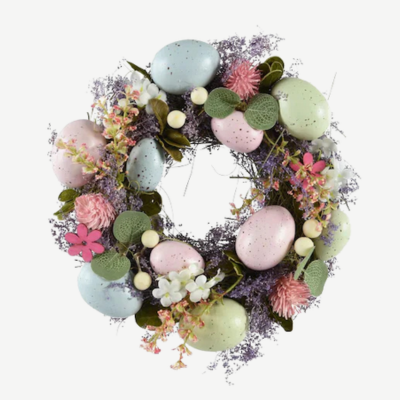 Easter with a delightful wreath, decorated with charming artificial eggs and