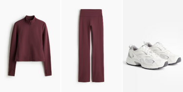 Jacket in Light Burgundy, H&M Flared Sports Leggings in Light Burgundy, H&M